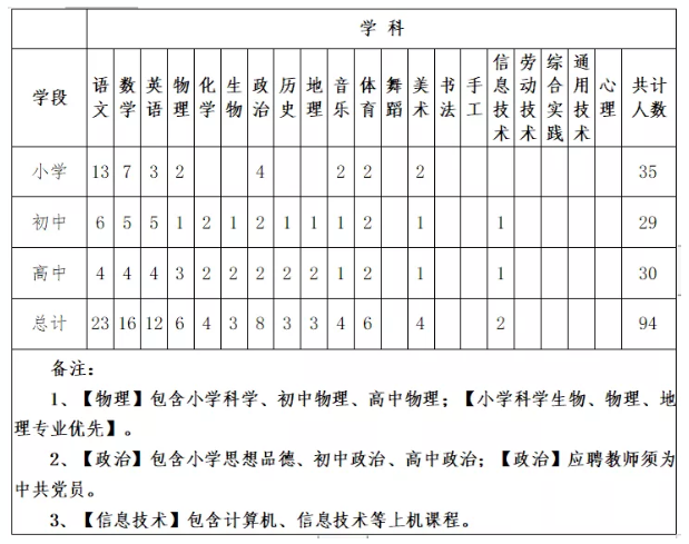 5.英语学科教师须取得英语专业八级合格证书;其他学科教师须达到全国大学英语四级425分及以上,其他语种需达到相应等级;(音体美学科教师英语要求适当放宽);