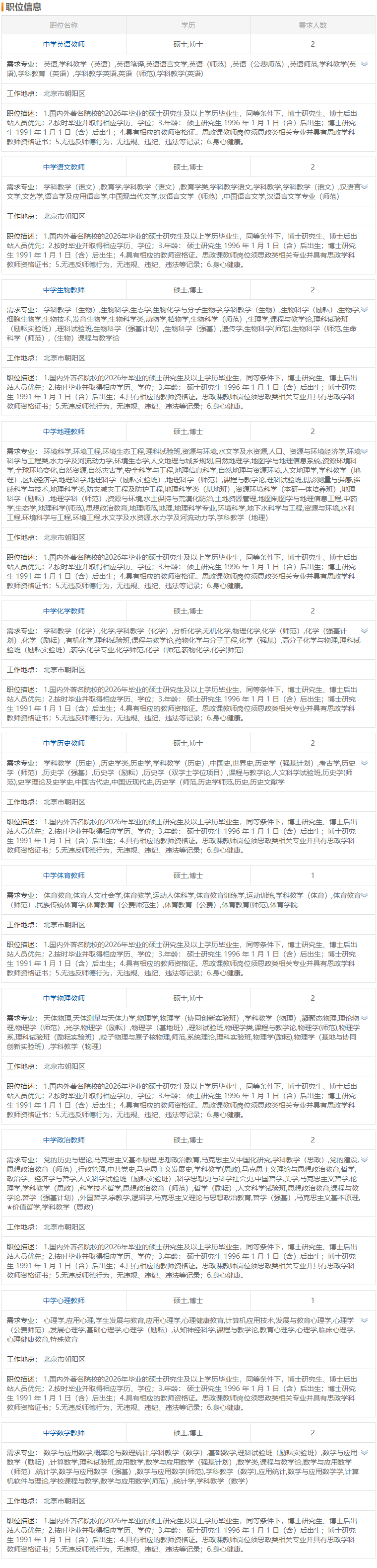 北京市第八十中学2025-2026学年度招聘