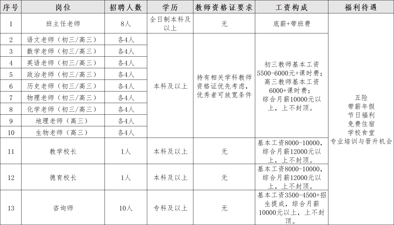 考核通过后,缴纳五险、提供带薪年假、节日福利、免费住宿、学校食堂、专业培训与晋升机会等。