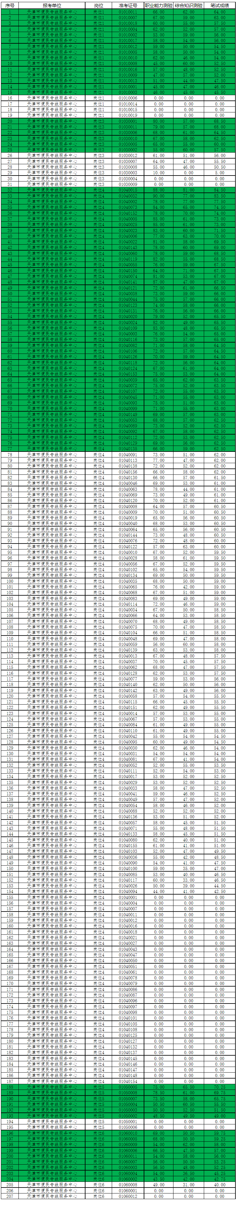 天津市便民专线服务中心2025年第一批合同制员工公开招聘笔试成绩公布如下,背景标绿色人员进入面试阶段。请进入面试人员按照下列要求参加资格复审: 1.资格复审时间:2025年4月11日(周五),上午9:00-11:30 (时间如有变化另行通知) 2.资格复审地点:天津泰达人才发展有限公司(天津市经济技术开发区南海路69号) 3.资格复审需带材料(均需提供原件及复印件,原件审后即退,复印件留存): (1)网上报名登记表(打印并签字); (2)居民二代身份证原件及复印件1份; (3)学历证书、学位证书原件及学信网(教育部)中国高等教育学历查询结果,持有香港、澳门、台湾和国外院校毕业证书的人员,需具有教育部门的学历认证,必要时需提供我国驻外使领馆的有关证明; (4)报考岗位5、岗位6人员需要提供天津市残疾人联合会颁发《中华人民共和国残疾人证》(肢体残疾4级或听力残疾); (5)应届毕业生未取得毕业证人员需毕业院校提供可按时毕业的相关证明文件; (6)与岗位资格条件相关的其他材料。 4.凡提供虚假材料的,以及伪造、变造有关证件、材料、信息,取消该报考人员参加面试的资格。未按规定时间、地点参加资格复审的,视为自动放弃面试资格。 附件:笔试成绩 ![]()  |