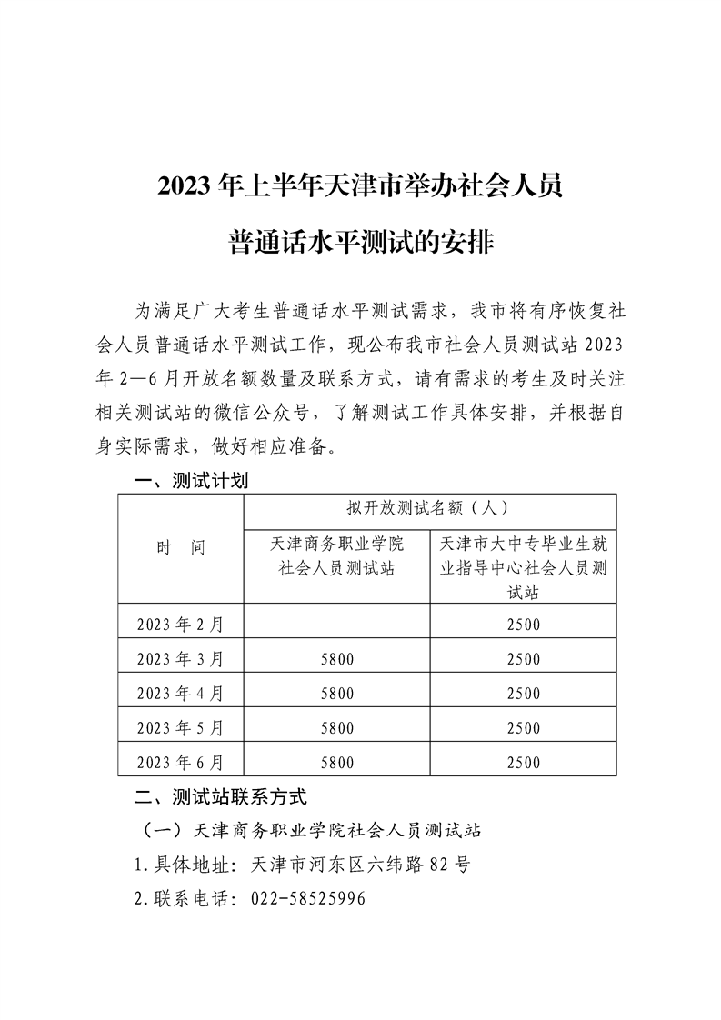 2023年上半年天津市举办社会人员普通话水平测试的安排