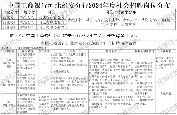 中国工商银行河北雄安分行2024年度社会招聘公告