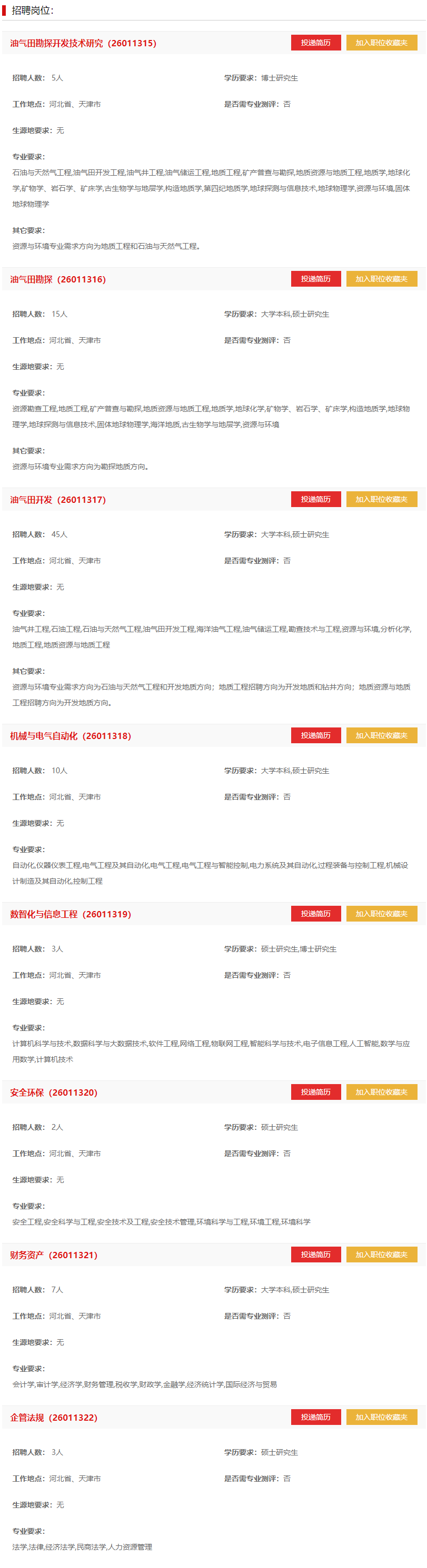 中国石油天然气股份有限公司大港油田分公司2025年秋季高校毕业生招聘
