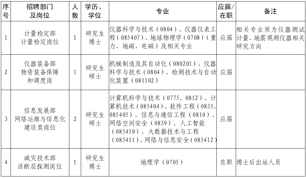 备注:硕士研究生须参加中国地震局组织的统一笔试,博士研究生可免笔试。