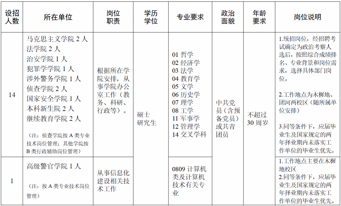3、热爱公安教育事业,责任心强,遵纪守法,身心健康,服从管理;