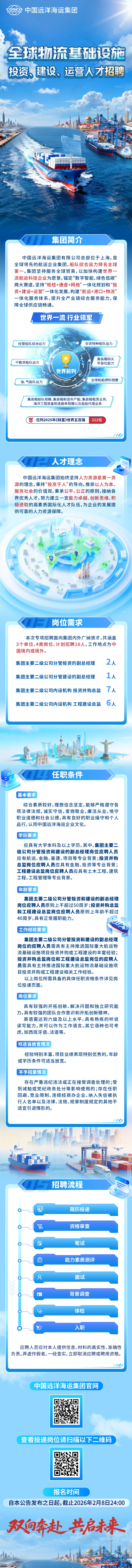 中远海运全球物流基础设施投资、建设、运营人才招聘