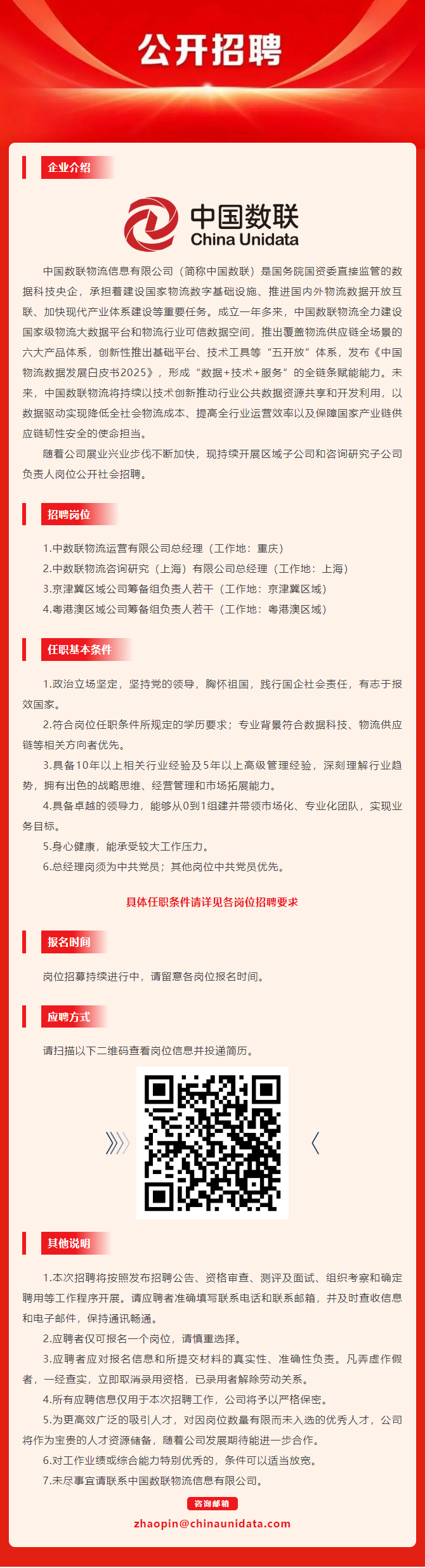 中国数联子公司负责人岗位公开招聘公告