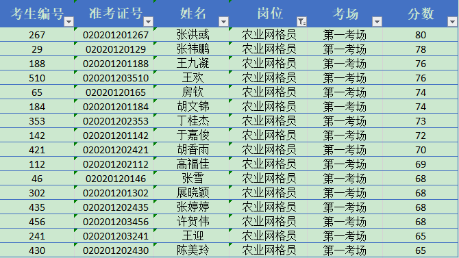 农业网格员 笔试合格者名单