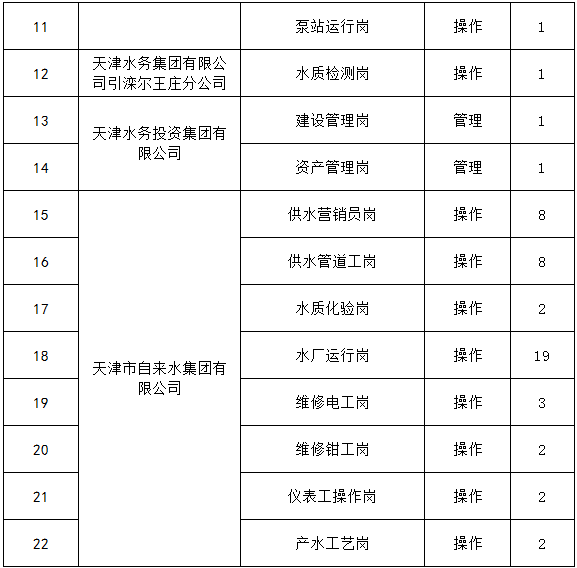 1. 2020年度天津水务集团所属单位招聘岗位条件