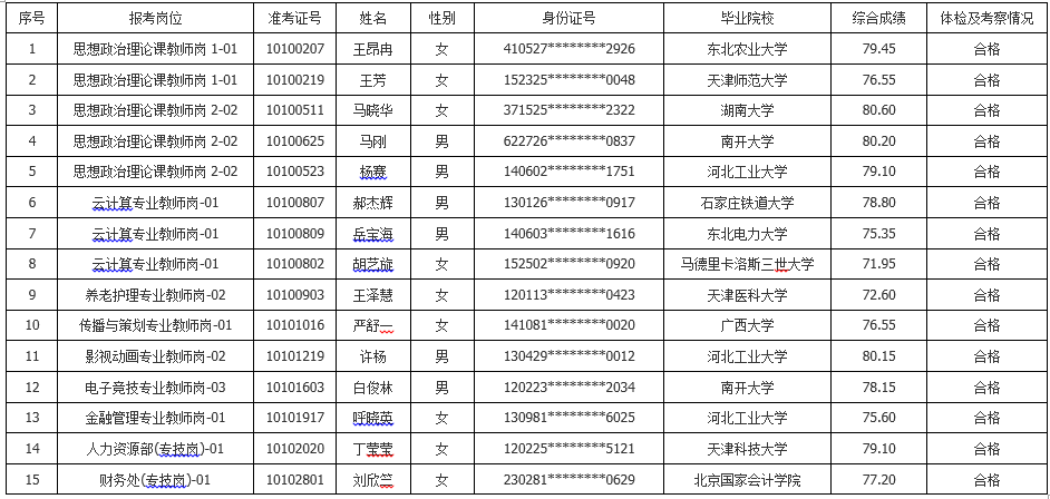- 天津医科大学2023年第六批公开招聘拟聘用人员公示