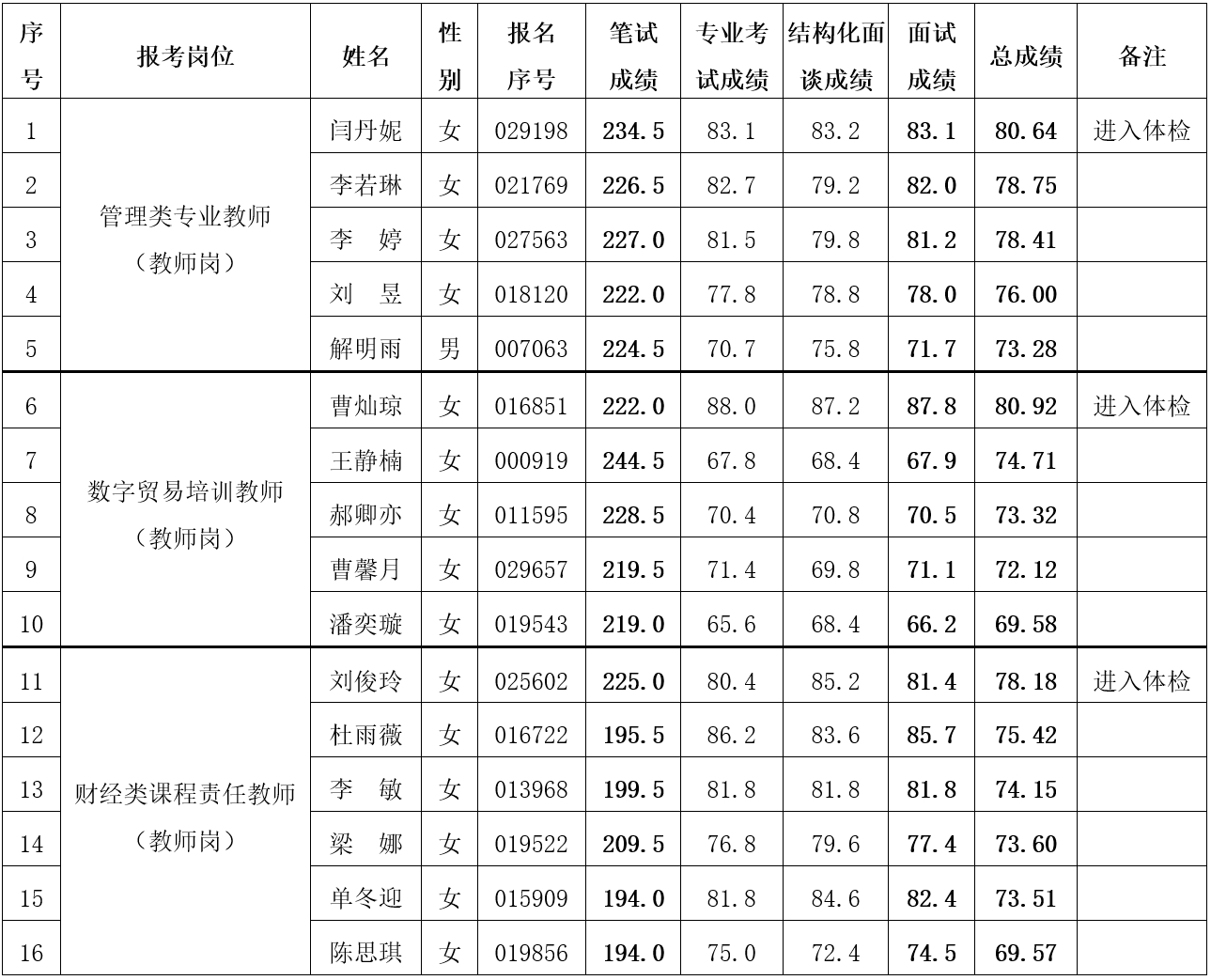 2、总成绩按笔试成绩(百分制,保留1位小数)和面试成绩各占50%的比例合成,保留2位小数。