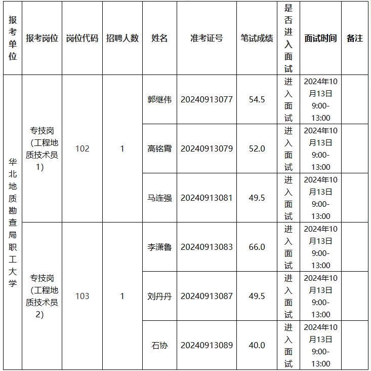 华北地质勘查局职工大学2024年第三批公开招聘工作人员面试安排