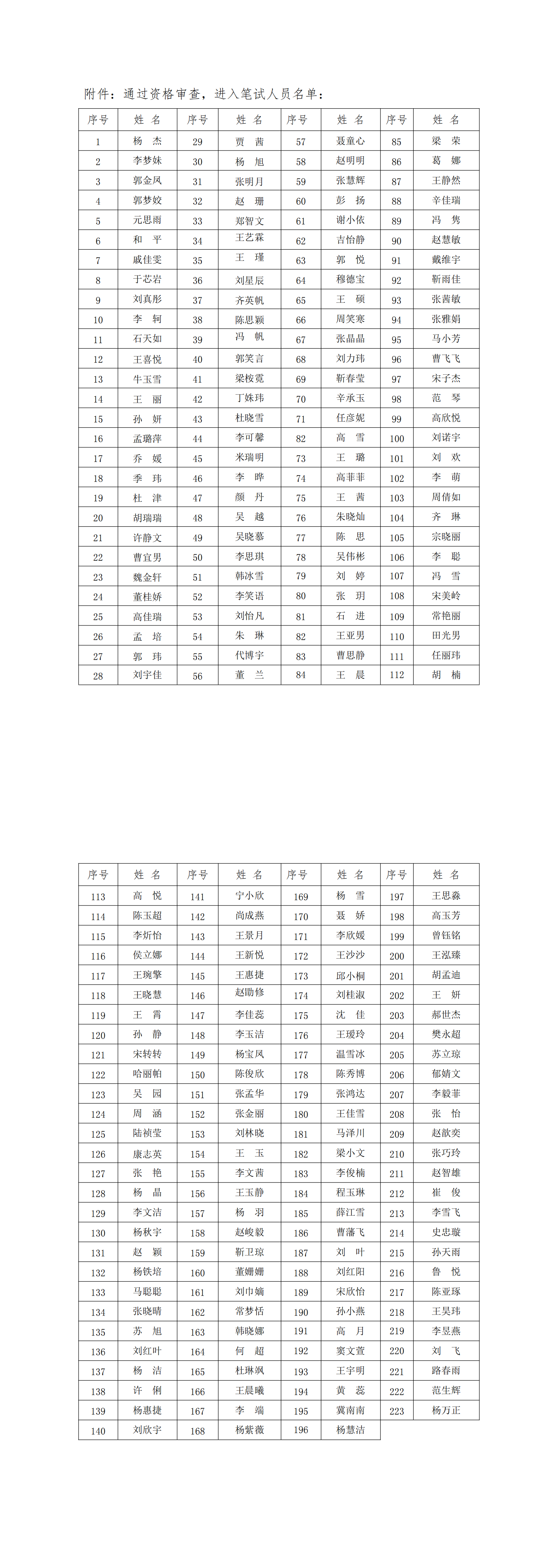 一、笔试人员范围:通过应聘资格审查人员,名单详见附件。