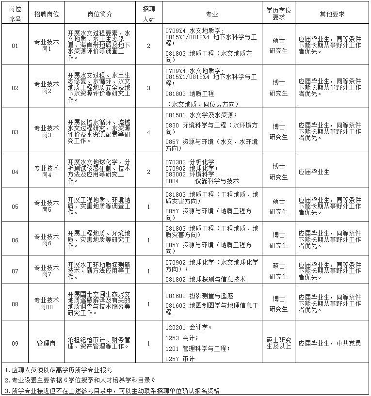 中国地质科学院水文地质环境地质研究所2024年度第二批公开招聘应届毕业生16人公告