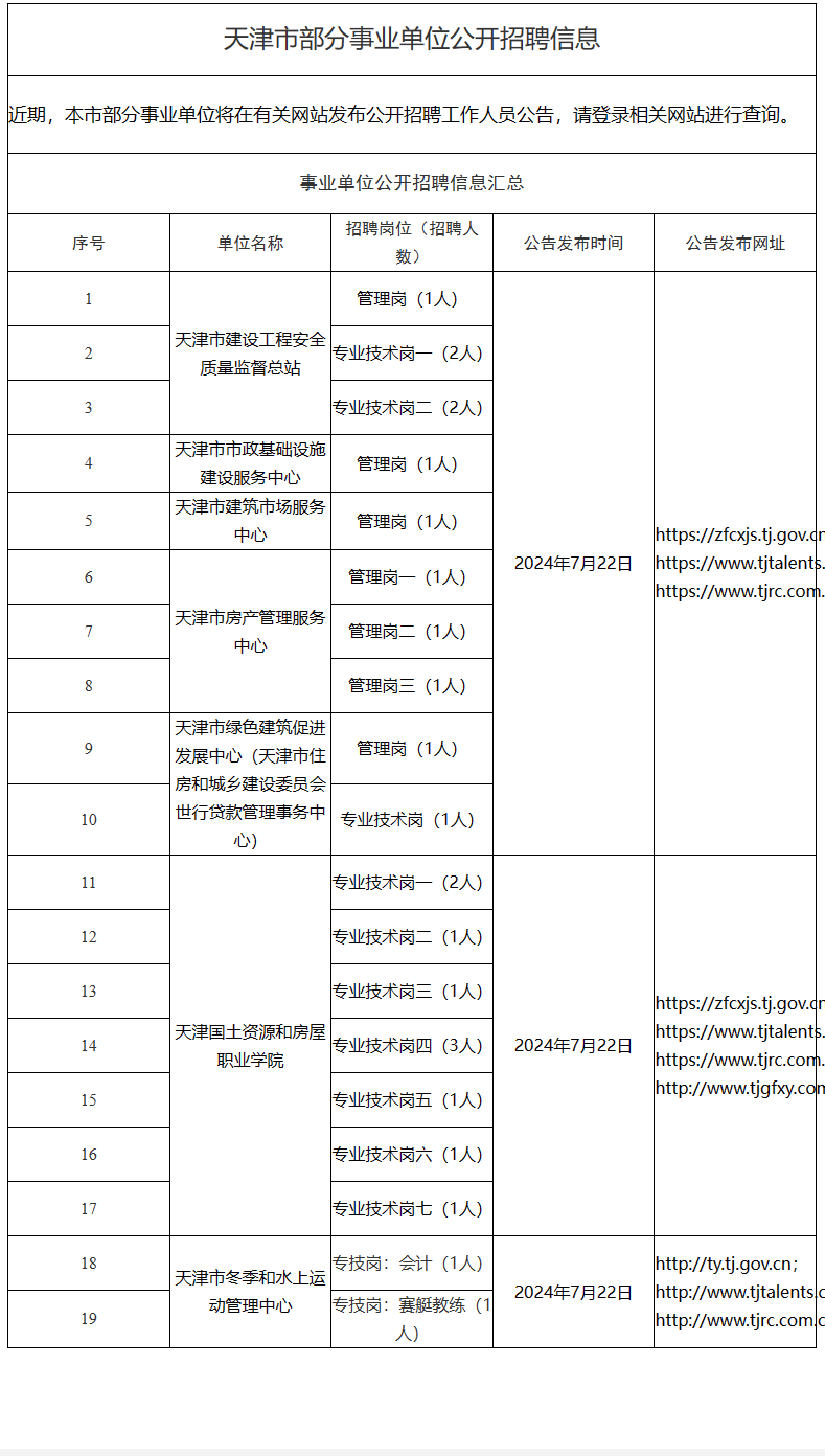 天津市住房和城乡建设委员会2024年直属事业单位公开招聘工作人员22人公告