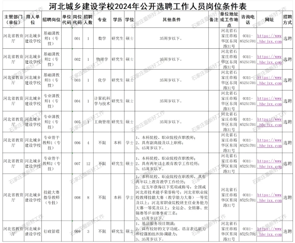 河北城乡建设学校2024年公开选聘32名工作人员公告