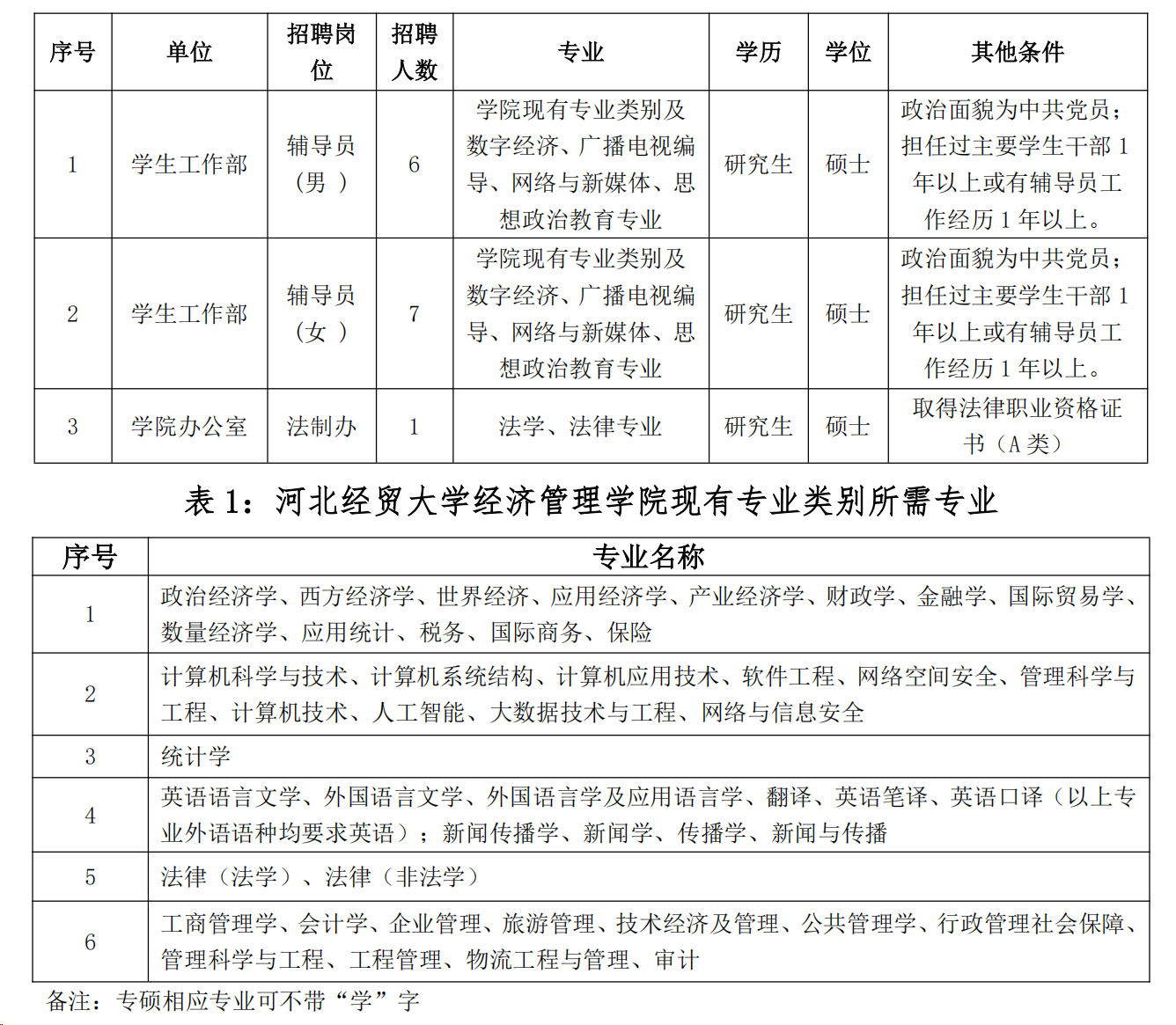 为进一步充实教职工队伍,结合河北经贸大学经济管理学院2025年招聘工作人员计划、岗位空缺情况和工作需要,拟面向社会公开招聘工作人员14名,现将有关事宜公告如下: