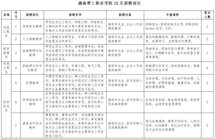 河北渤海理工职业学院2025年12月招聘公告