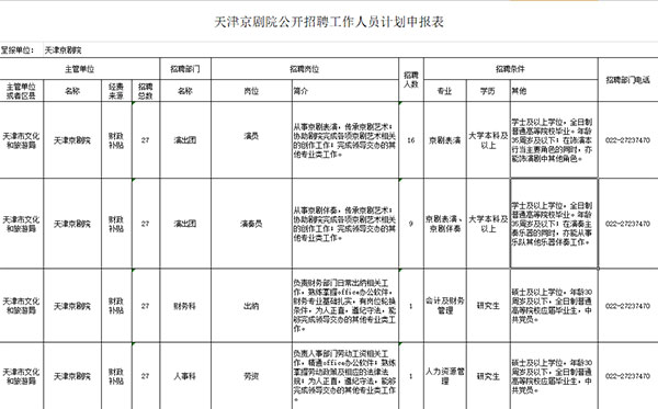 附件:天津京剧院公开招聘工作人员计划表