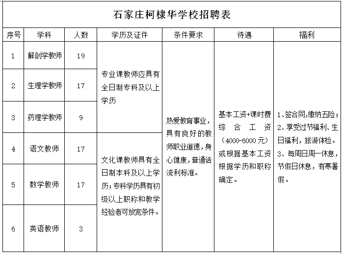 经过30年的不懈努力,学校在全军五大战区和武警系统医院建立了牢固的实习就业基地,学生全部推荐到军队、地方二甲以上医院实习就业,为部队和地方医院培养了大批优秀护理人才。为适应学校发展的需要,加强师资队伍建设,现委托河北诺亚人力资源开发有限公司向社会公开招聘员工。