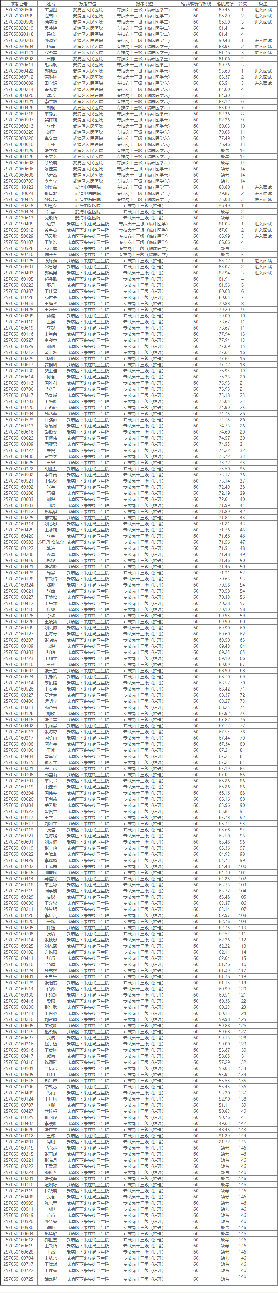武清区卫健系统事业单位2025年度第二批公开招聘专业技术人员成绩公示