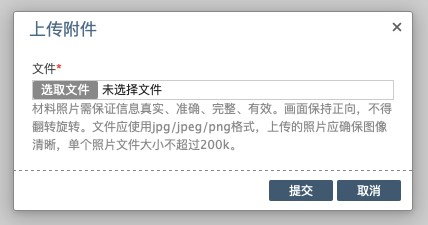 点击选取文件,即可进入图片选择界面,选择完成点击提交即可上传。如下图: