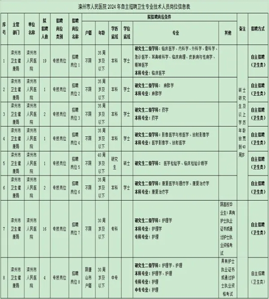 附件:1.滦州市人民医院2024年自主招聘卫生专业技术人员岗位信息表