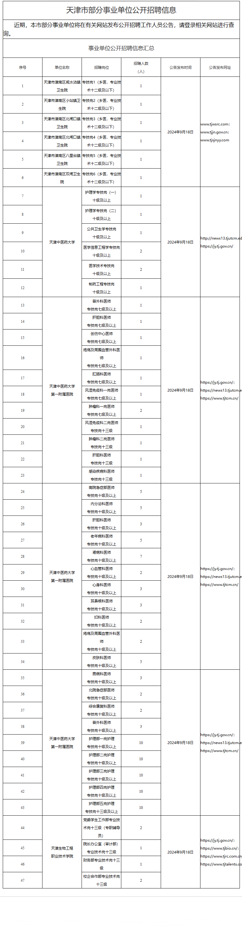 - 天津市北辰区中医医院2024年第三批合同制人员招聘2人公告