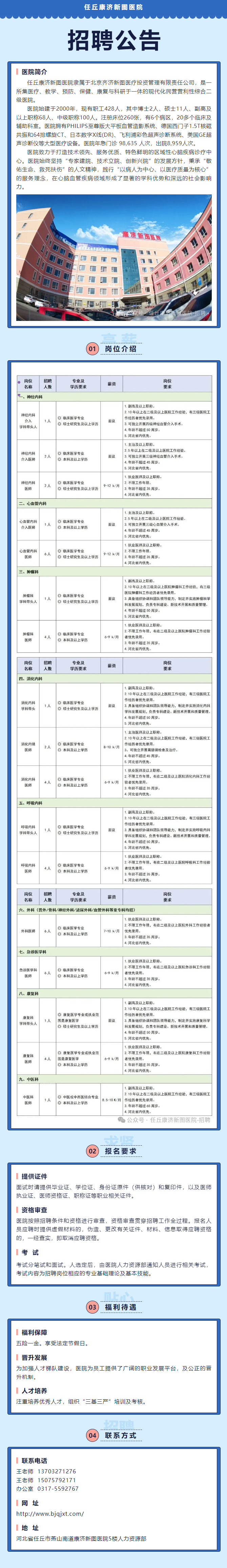 河北沧州任丘康济新图医院招聘公告