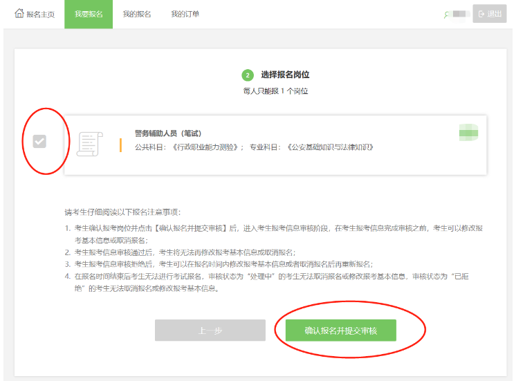 跳转至下一页面后,请先选中左面的考试科目,然后点击“确认报名并提交审核”。