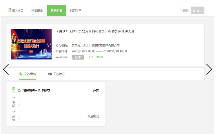 八、应聘者成功提交报名后,进入初审状态。查询审核结果,请再次登录系统查看“我的报名”